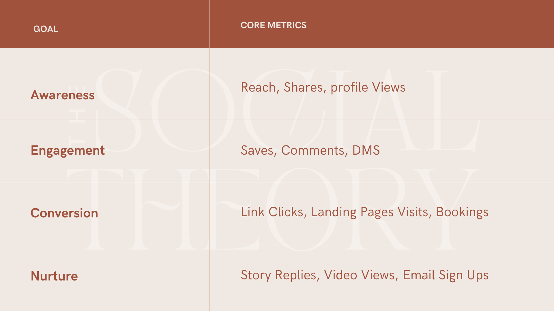 Important: Your goals will shift depending on your capacity and offer cycle. If you're fully booked? Focus on brand equity. If you’re launching? Focus on action.